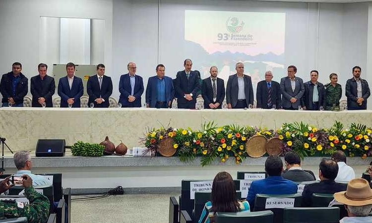 Na manhã desta terça-feira (25/7), o secretário Thales Fernandes esteve ao lado de outras autoridades, como o presidente da Emater-MG, Otávio Maia, e o reitor da UFV, Demetrius David da Silva, na abertura da 10ª Semana da Mulher Rural, também parte da programação da Semana do Fazendeiro.