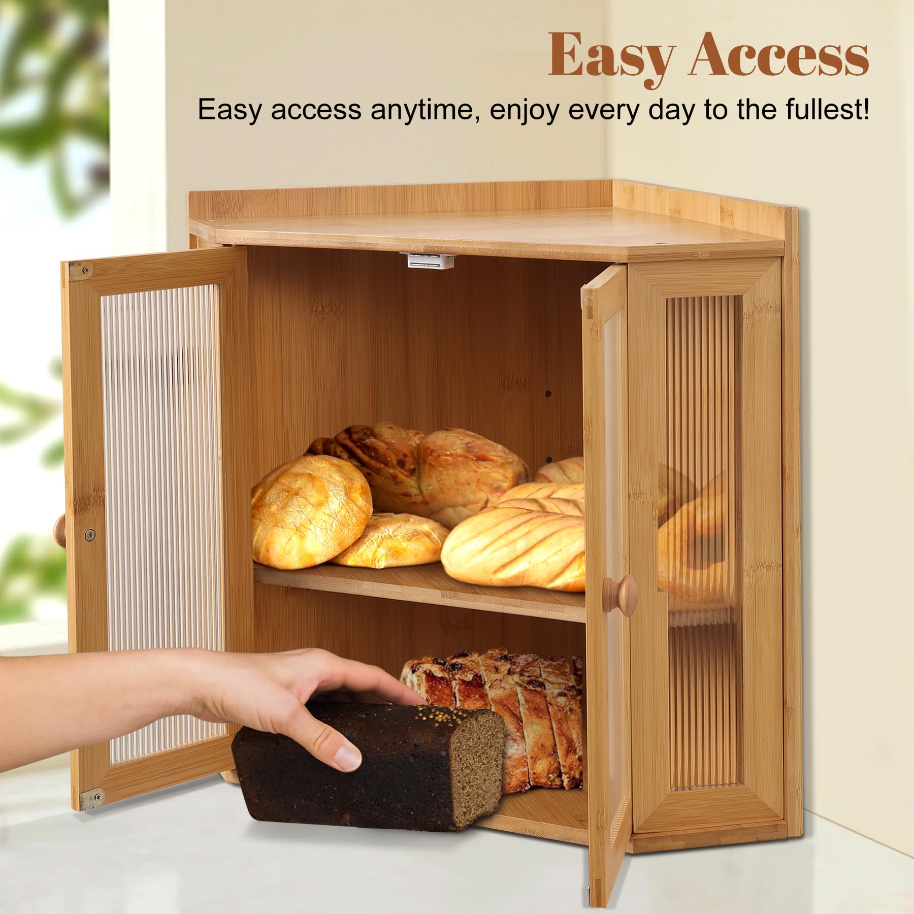 Assemblage facile inclus : nous incluons un tournevis pour une installation sans tracas, aucun outil supplémentaire n'est nécessaire. Dimensions du produit : 41,4 cm (L) × 24,8 cm (l) × 33 cm (H) Capacité généreuse à 2 niveaux : deux plateaux en bambou de 37,1 x 23,9 cm peuvent contenir 2 grands pains, plus des rouleaux, des muffins ou des croissants, parfaits pour les petits déjeuners en famille, les pâtisseries du week-end ou le stockage des essentiels quotidiens Design classique : Dimensions : 39 x 26 x 32 cm. · Ustensiles de préparation du pain : Grâce à sa grande capacité à double paroi, cette boîte à pain peut... Boîte à Pain Noire Pour Comptoir De Cuisine, Grande Boîte à Pain à Boîte à Pain Double Couche Grande Taille 36,5 X 24 X 34 Cm Armoire De Rangement Pour Cuisine Boite De Conservation Pour Le Pain 87984561 Grande boîte à pain Grande Boîte à Pain En Bambou Pour Comptoir De Cuisine, Boîte De Rangement à Pain Double Couche En Bois De Grande Capacité Avec Panneau De Porte Ondulé En...