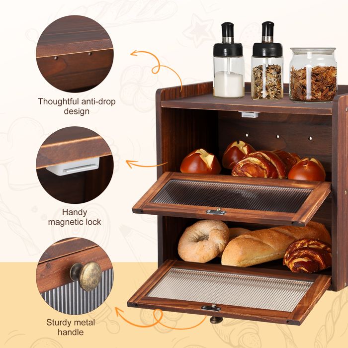 Réductions Boîte à Pain Noire Pour Comptoir De Cuisine, Grande Boîte à Pain à