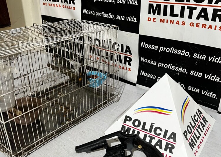 Durante as buscas foram encontradas, 01 revólver calibre 38 com 02 munições intactas, 02 deflagradas e 01 pássaro da fauna silvestre sem anilha.