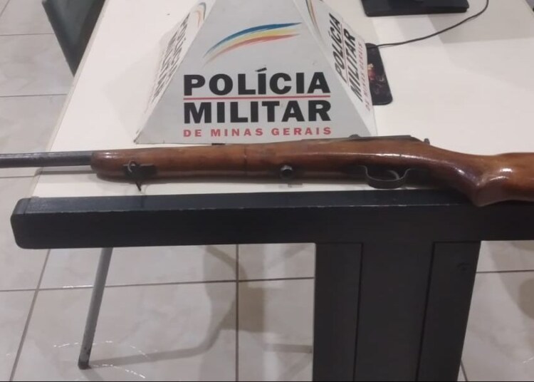 No local, durante o atendimento do fato, os militares realizaram buscas, sendo localizada e apreendida 01 espingarda, calibre 22.
