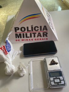 Durante as buscas foram localizadas 21 buchas e 01 sacola de cocaína, 01 porção de maconha, 01 simulacro de arma de fogo, 02 balanças de precisão e R$235,00.