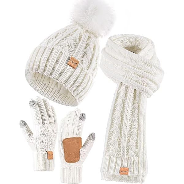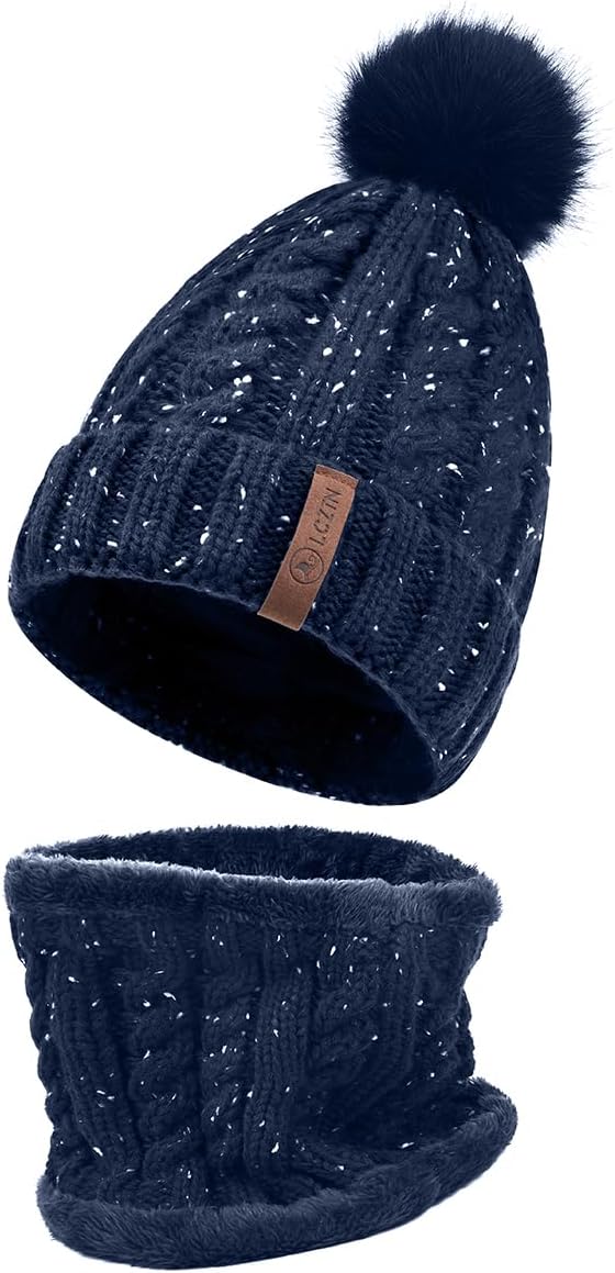 LCZTN Ensemble Mignon Pour Femme – Bonnet D'hiver à Pompon Et écharpe Avec Doublure En Molleton Pour Ski