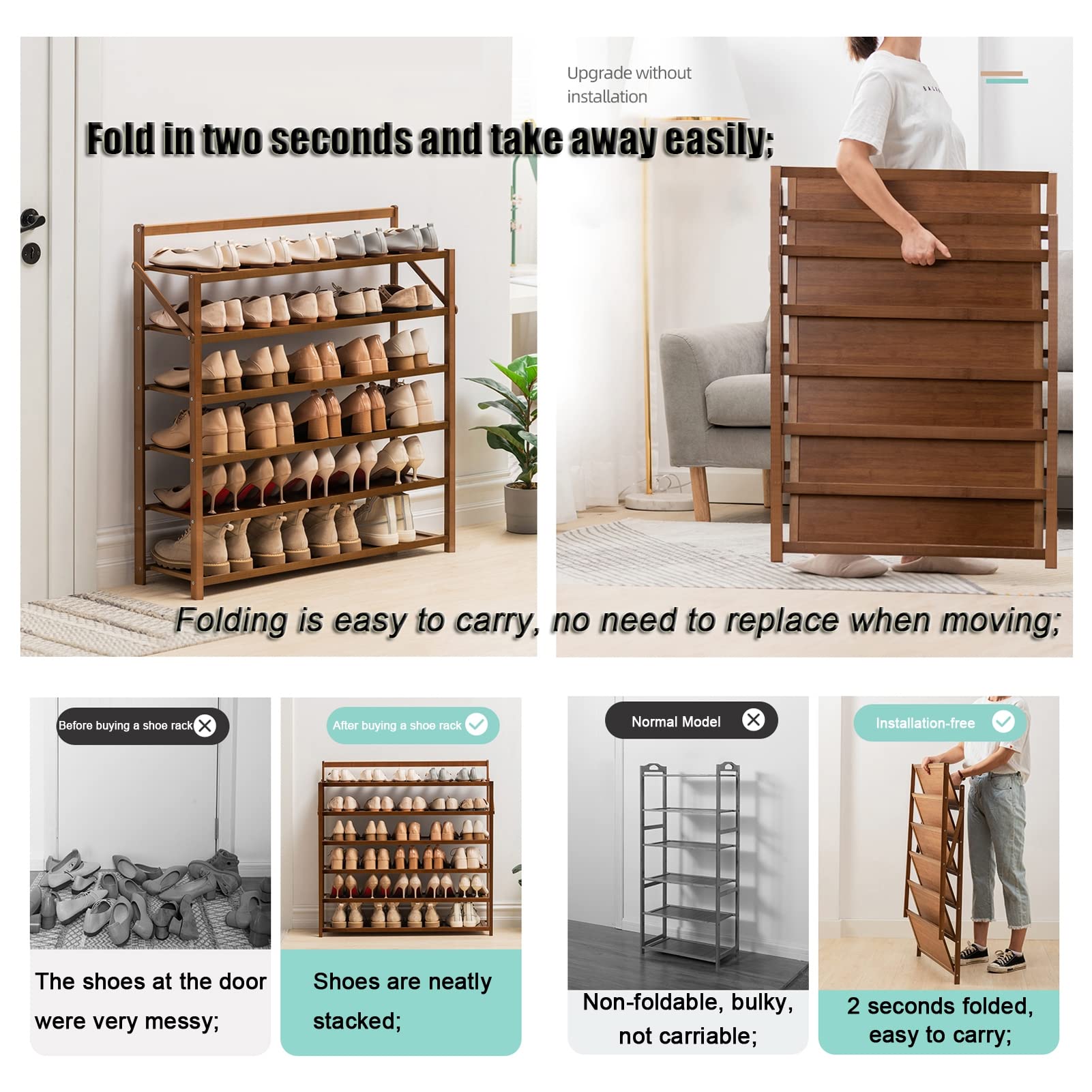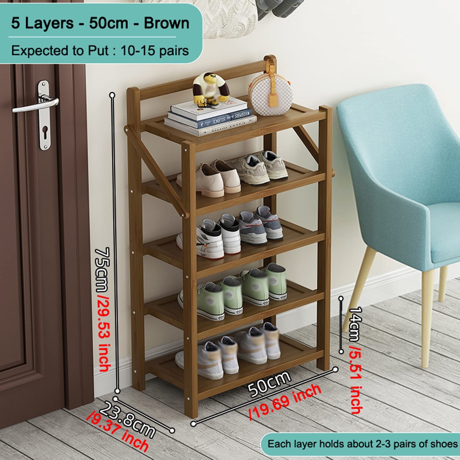 Etagère Chaussure Étagère Chaussures à 3 Niveaux Meuble De Rangement En Bambou Etagere Pour Chaussure Banc étagère à chaussures en bambou naturel 3 niveaux charge admissible... Matériau de haute qualité : fabriqué à partir de matériaux en bambou naturel, notre meuble à chaussures est durable. HAKGG Support ural pour Chaussures Pliable, 2 Étages Étagère à... Il suffit de déplier le support de rangement pour chaussures et de l'utiliser. Gagnez du temps et des efforts : aucune installation requise ! Organisation Entrée Pratique Étagère Chaussures 7 étages Bambou Tournez la barre transversale à chaque niveau pour sécuriser facilement l'étagère à chaussures en une minute. Design peu encombrant : avec ses dimensions de 25,4 x 25,4 x 71,8 cm, cette armoire à chaussures peut stocker jusqu'à 5 paires de chaussures tout en prenant peu de place au sol, peut être placée dans le placard, le salon, le balcon, l'entrée ou le couloir. Étagère à chaussures multifonctionnelle : cet organisateur de chaussures offre un grand espace de rangement pour les chaussures, rend votre rangement de chaussures propre et bien rangé, et peut également être utilisé comme plante en pot, étagère d'affichage pour livres, CD et autres articles quotidiens, multifonction.