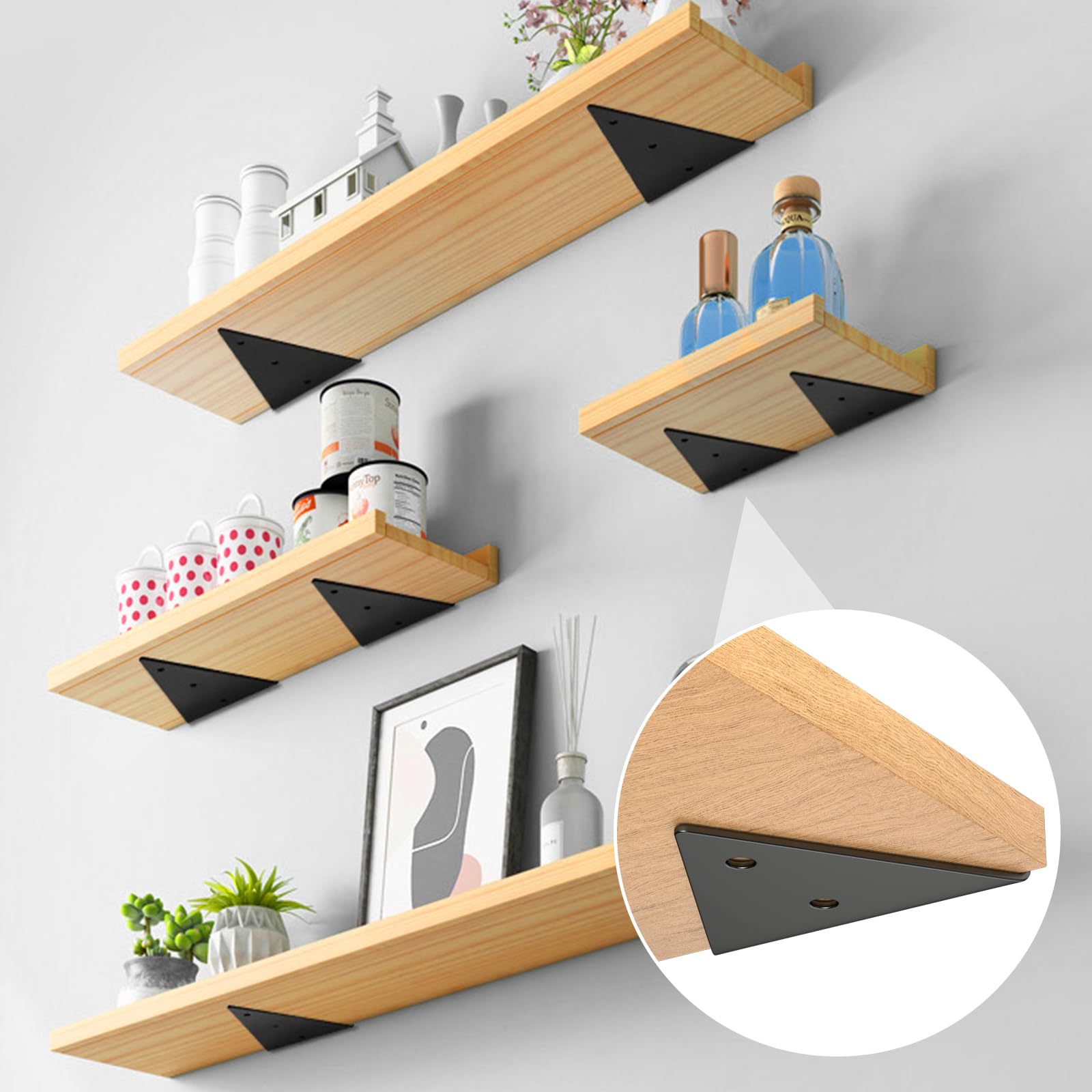 La conception invisible permet au support d'être intégré de manière transparente entre l'étagère et le mur, offrant un effet flottant, esthétique et peu encombrant Tous les accessoires sont emballés séparément pour éviter les dommages dus aux collisions pendant le transport, afin de garantir que le produit arrive en une seule pièce. Il convient à divers environnements et garantit un soutien et une esthétique durables Le matériau présente une grande résistance à la traction, ne se déforme pas et ne rouille pas en cas d'utilisation prolongée. Conception Innovante: la structure triangulaire améliore la stabilité et la capacité de charge du support, et les vis à haute résistance garantissent la stabilité à long terme. Il convient à divers environnements et garantit un soutienet une esthétique durables. Conception Innovante: la structure triangulaire améliore la stabilité et la capacité de charge du support, et les vis à haute résistance garantissent la stabilité à long terme Largement Utilisé: convient pour les bibliothèques, les étagères de présentation, les étagères de stockage et bien d'autres scénarios, et peut être installé dans les salons, les chambres à coucher, les cuisines, les salles de bains et les balcons. équerre étagère Rseuphiee 4 Pièces Supports D'étagère, 80x100 Fixation Invisible Equerre Etagere Murale Rseuphiee Lot de 4 supports pour étagères flottantes, 80 x 100 mm, support mural triangulaire, support d'étagère rétractable avec vis, support d'étagère... Emballage du Produit: Le paquet contient quatre supports invisibles de 8x10cm, 12 vis longues, 12 vis courtes et 12 vis d'expansion. 6 pièces Equerre Etagere urale, Support Étagère urale noirs, fixation